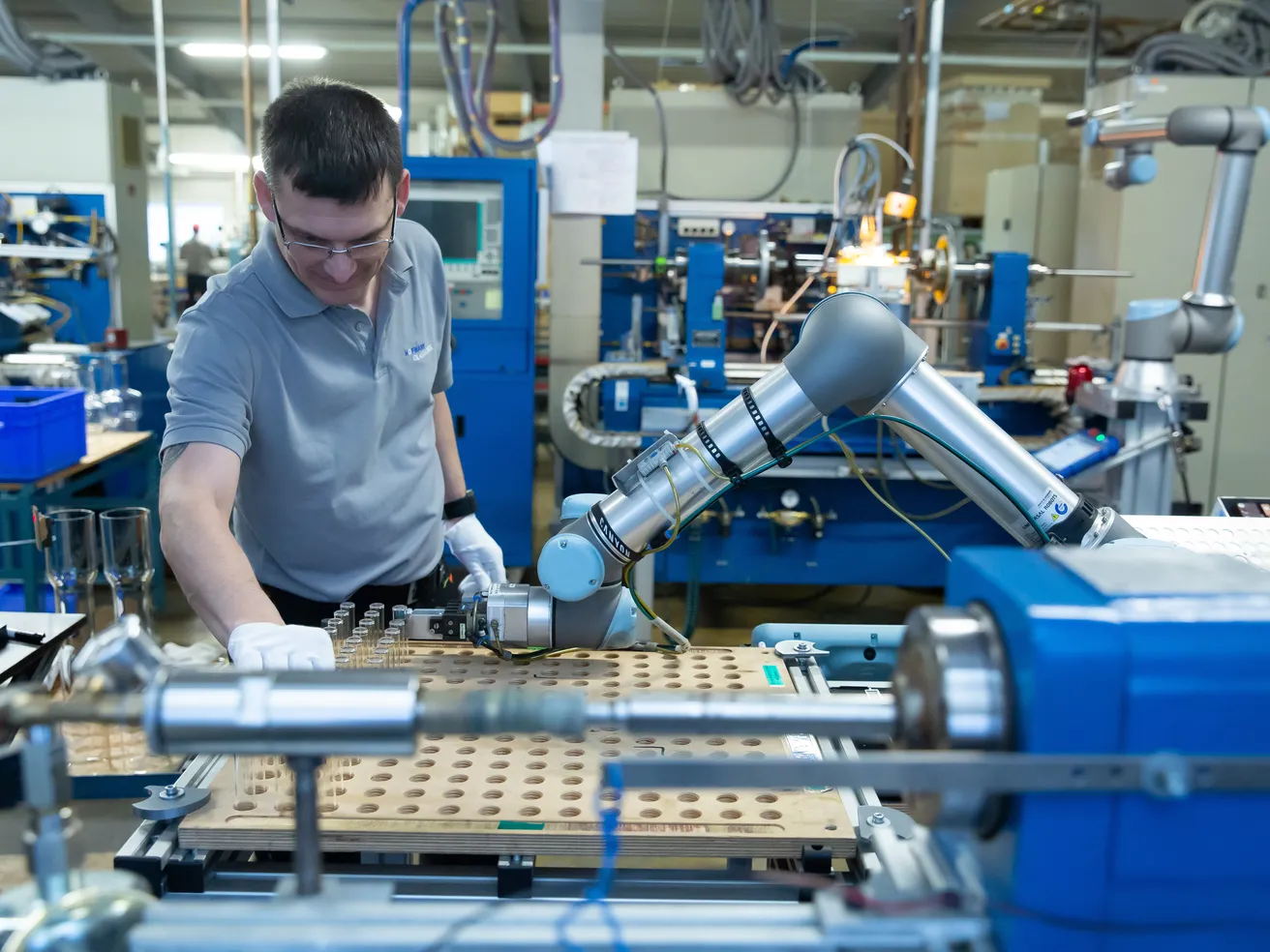 Improve workplace safety by allowing a robot to handle dangerous tasks. If the robot comes into contact with a person, our patented technology limits the forces at contact. UR robots can also be programmed to operate in reduced mode when a human enters the robot’s work area and resume full speed when the person leaves.